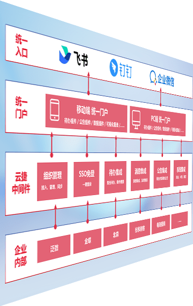 对协作平台提供支持服务,,,支持企业应用与协作平台对接,,,包含组织同步、、消息集成、、待办集成等。。支持目前主流的协作平台:钉钉、、、、企微和飞书。。。。